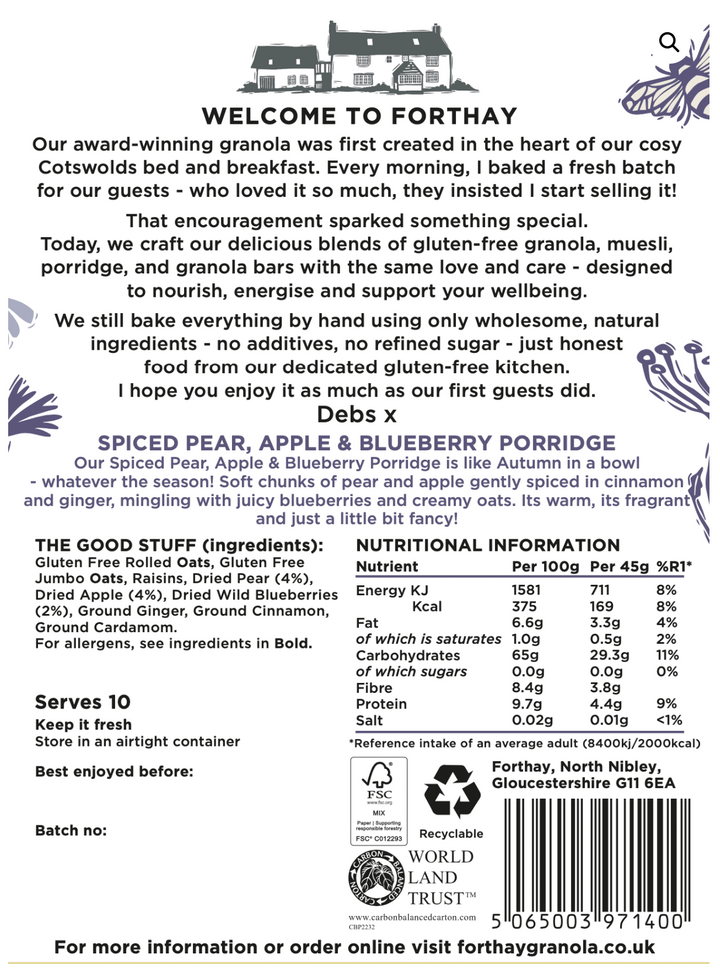 Porridge - Spiced Pear, Apple and Blueberry - Forthay Granola